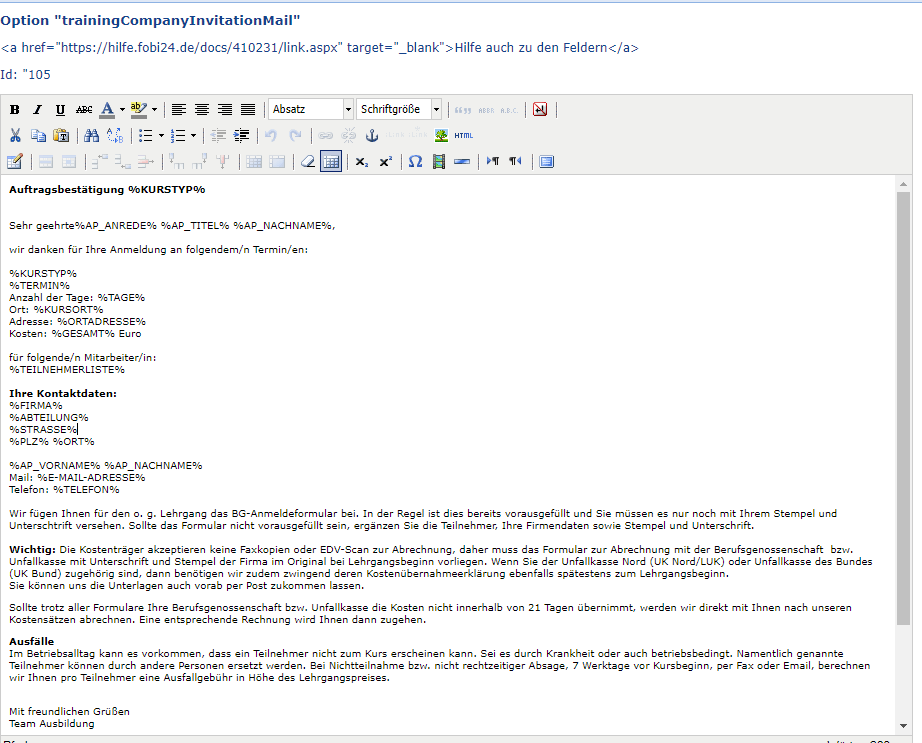 So können Sie z.B. die Mailtexte alle ganz variabel auf Ihre Wünsche hin anpassen.