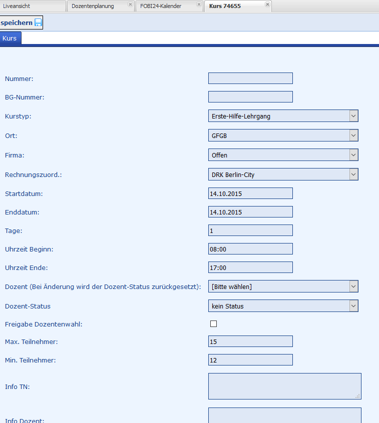 - Schließlich können Sie noch Informationen zur Verfügbarkeit von Dozenten als Notiz hinzufügen.