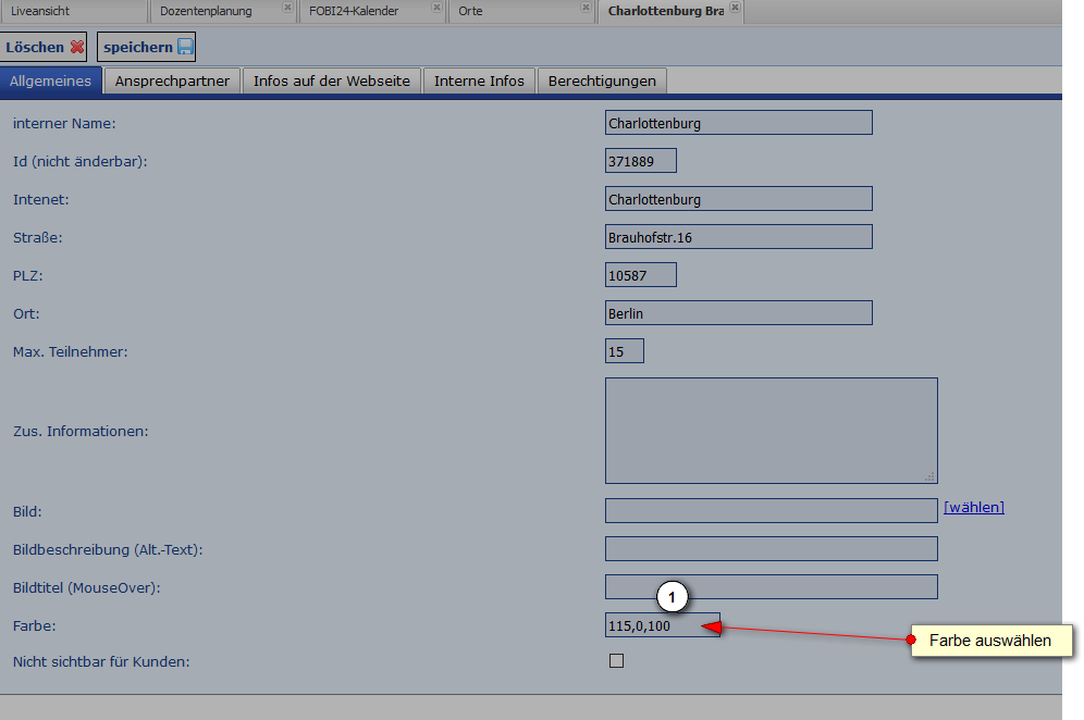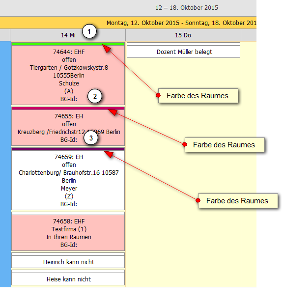 Diese Farben legen Sie jeweils bei den Räumen fest. Sind an einem Schulungsort mehrere Räume, dann können Sie natürlich den gleichen Farbcode verwenden.