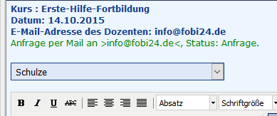 Sofort nach der Wahl des Dozenten wird der Text aus den Optionen in das Formular eingetragen. Der grundsätzliche Optionstext kann natürlich von Ihnen geändert werden. Dieser ist jetzt jedoch nur die Vorlage, so dass Sie individuelle Informationen in das Formular eintragen können.