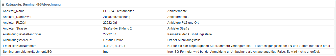 - Geben Sie für die Option SeminaranmeldungAttachmentsBG true ein. Zu tun unter System/Optionen