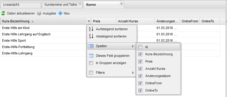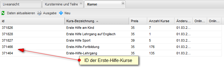 Wie komme ich nun an die ID der Erste-Hilfe-Kursnummern?