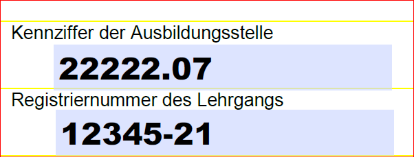Die Kennziffer Ihrer Ausbildungsstelle ist in der Option AusbildungsstelleKennziffer einzutragen, damit sie im BG Abrechnungsformular gedruckt werden kann.