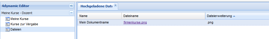 Diese Dokumente tauchen nun automatisch beim Login des Dozenten auf und können dann mit Klick auf den Link angesehen oder heruntergeladen werden. So können Sie neue Informationen leicht verteilen und bereitstellen.