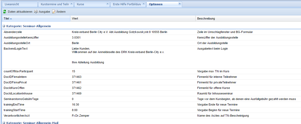 Die Referenten sind automatisch der Firma "Intern" oder "DRK intern" zugeordnet Wenn Sie unsicher sind: Die Id der Firma ist in der Option zu DocIDFirmaIntern einsehbar.