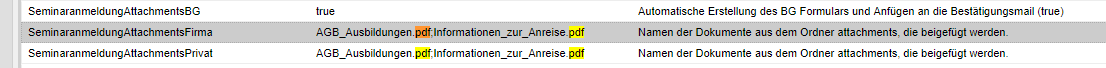 In der OptionSeminaranmeldungAttachmentsBG entscheiden Sie zudem, ob das ausgefüllte BG-Formular erzeugt wird und der Anmeldebestätigung beigefügt werden soll.