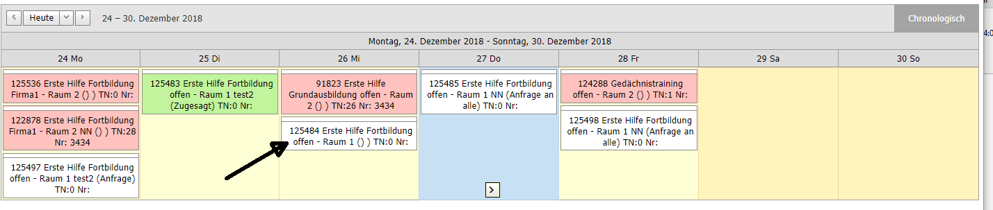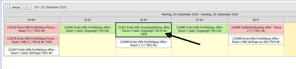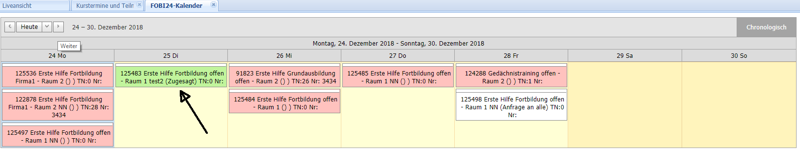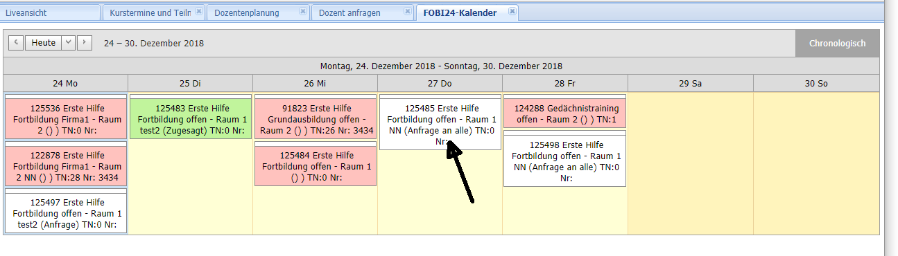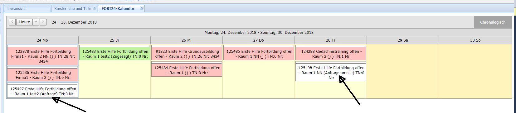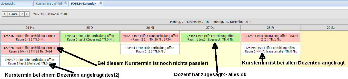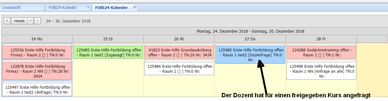 Es gibt Kunden, die fast alles in direkter Absprache mit dem Dozenten abstimmen und die Mail zur Anfrage und Bestätigung nicht in den Arbeitsablauf integriert haben. Für diese haben wir die Farben im Kalender auch angepasst: